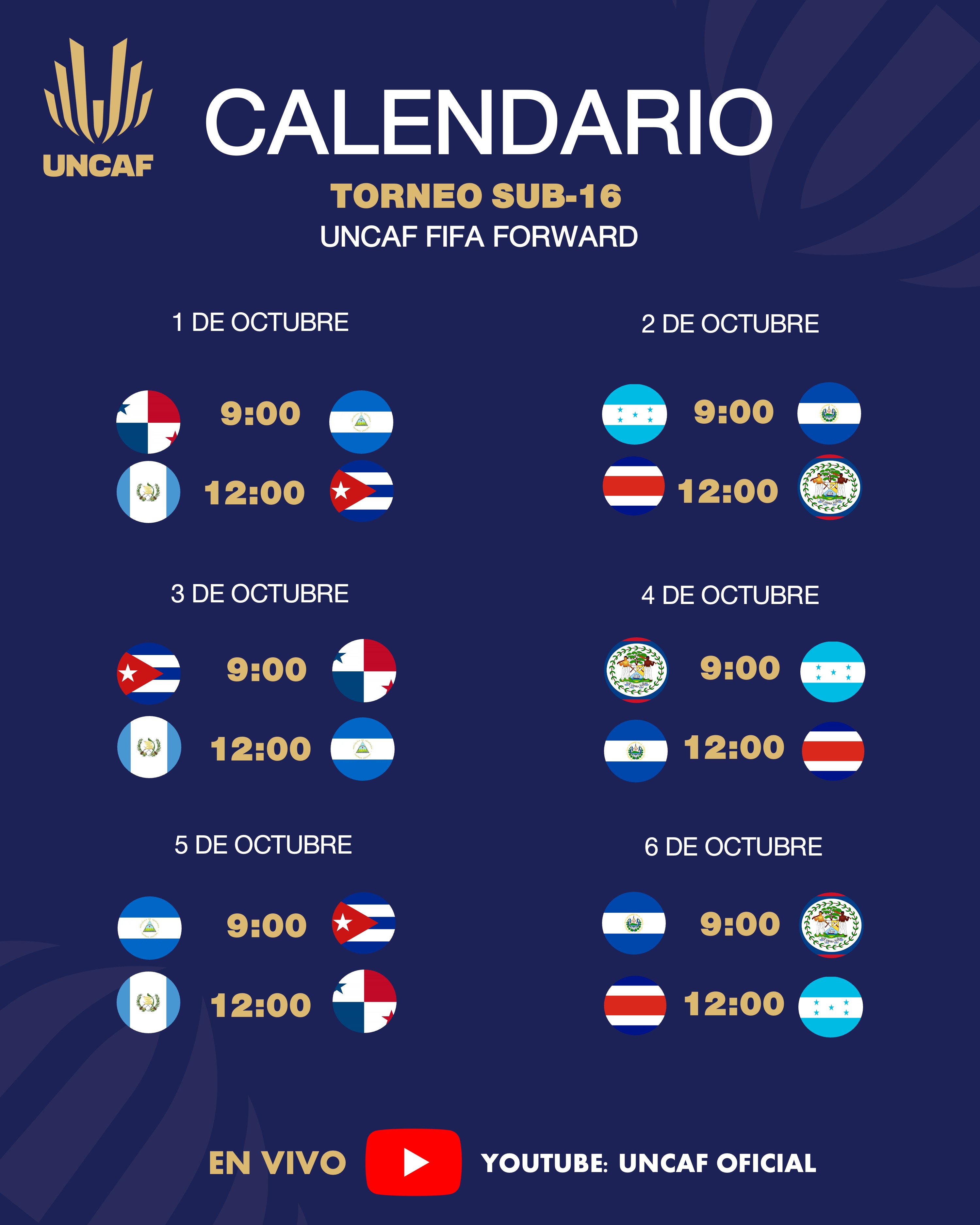 Del 1 al 8 de octubre se llevará acabo el torneo Torneo Sub16 UNCAF FIFA Forward en Ciudad de Guatemala