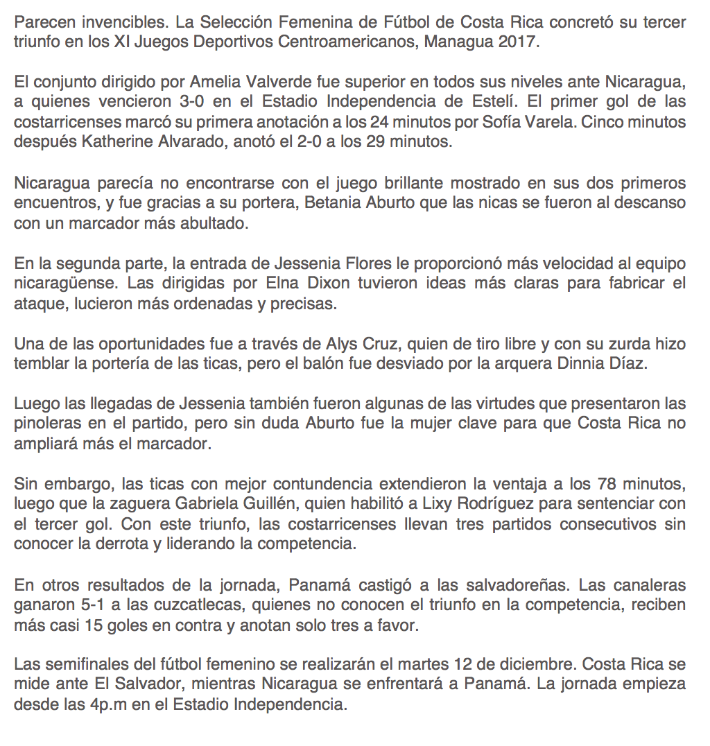 Definidas las semifinales en el Torneo femenino de los Juegos Centroamericanos