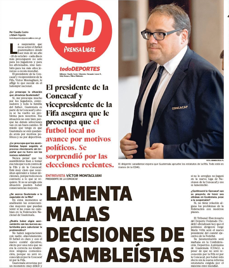 Presidente de CONCACAF Victor Montagliani comenta sobre la situación de la Federación Nacional de Fútbol de Guatemala.